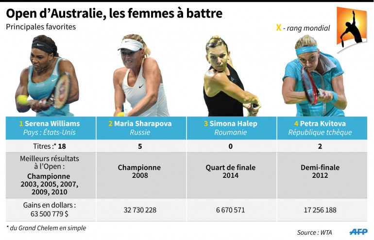 Les 5 favorites du simple dames de l'Open d'Australie de tennis 2015.