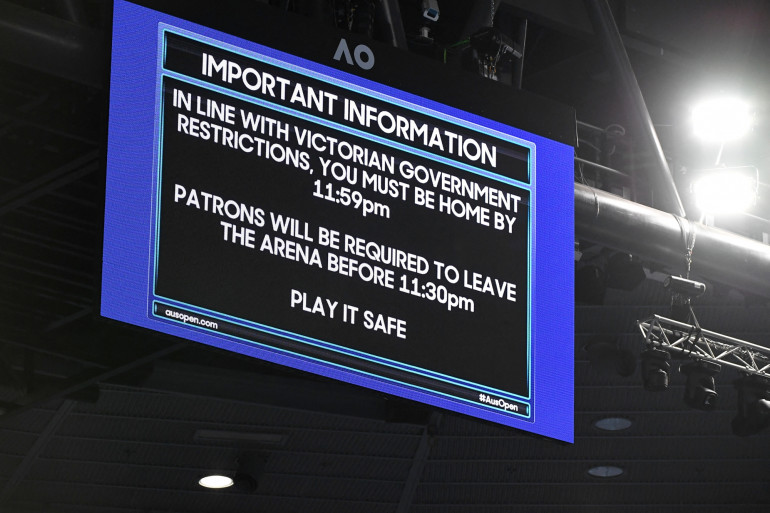 À l'Open d'Australie à Melbourne, le public a dû quitter la Rod Laver Arena à 23h30 pour respecter un nouveau confinement qui démarrait à minuit