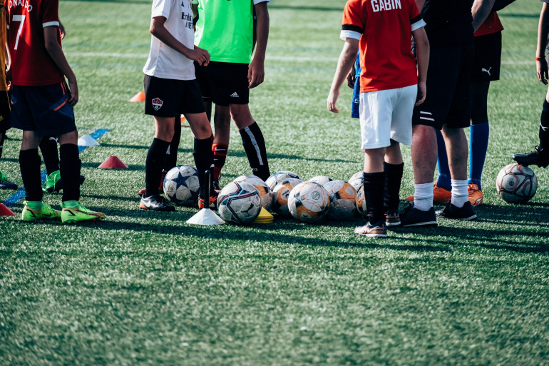 Des enfants jouent au football dans un club dans la région de Toulouse en 2023.