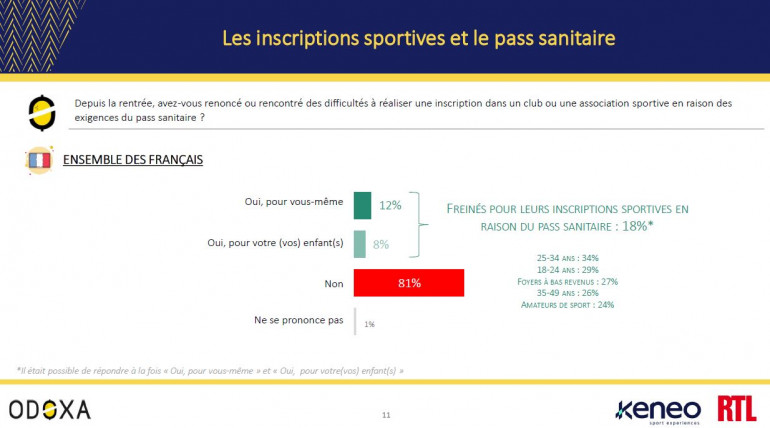 Mais déjà fortement touché par la crise sanitaire, le monde du sport amateur fait face à une nouvelle difficulté en cette rentrée : le passe sanitaire a freiné les inscriptions de près de un Français sur cinq (18%). Il y a enfin de l’espoir en pleine crise du bénévolat sportif : 23% de nos concitoyens seraient prêts à s’investir dans les activités d’un club ou d’une association sportive.