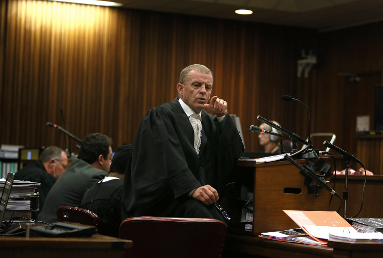 Le procureur Gerrie Nel lors du procès pour meurtre d'Oscar Pistorius, le 15 avril 2014