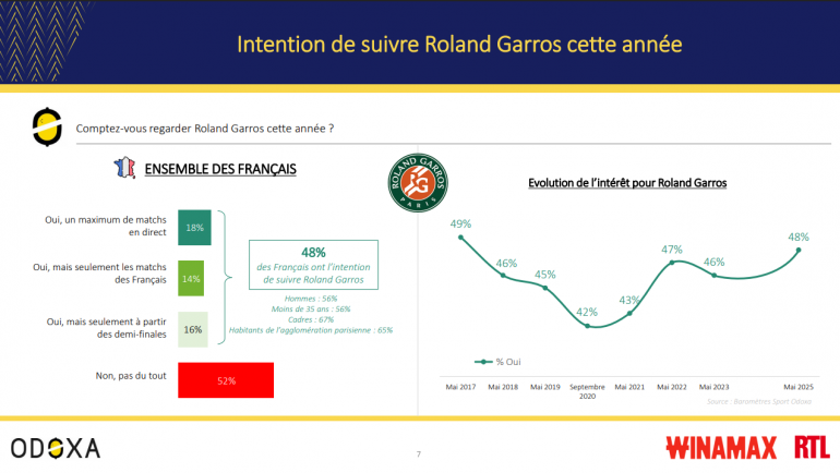 Intention de suivi de Roland-Garros 2025 chez les Français