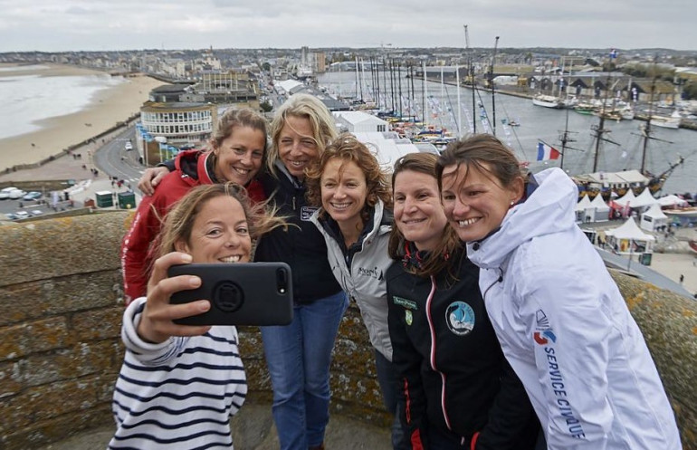 De gauche à droite, Alexia Barrier, Samatha Davies, Miranda Merron, Isabelle Joschke, Morgane Poupon et Claire Pruvost