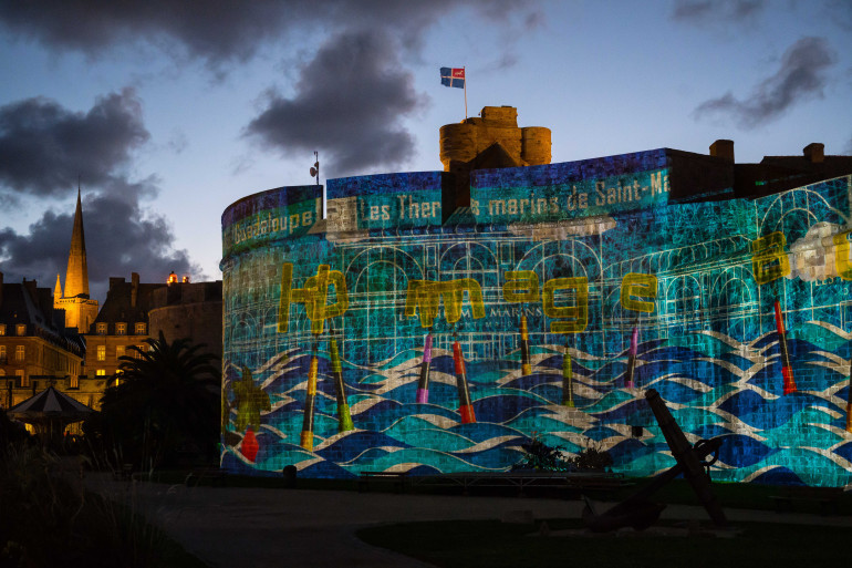 Chaque soir et jusqu’au 4 novembre, des centaines de spectateurs se massent sur l’esplanade pour assister au son et lumières projeté en continu de 18h à 22h sur les remparts de la cité corsaire. Ce spectacle gratuit est un hommage aux vainqueurs de la Route du Rhum.