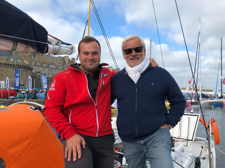 C’est Thierry Dusautoir, ex-capitaine du XV de France de rugby qui est le parrain du Class40 "Corum" de Nicolas Troussel. Le skipper qui fait parti des favoris pour la victoire dans la transat mythique, est un passionné de rugby et du Tournoi des VI nations. Il a le week-end dernier accueilli l’ancien troisième ligne du Stade Toulousain sur son voilier pour lui présenter son projet et ses ambitions sur cette Route du Rhum 2018.