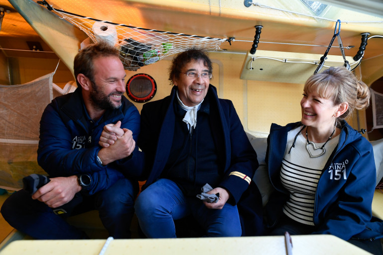 Laurent Voulzy, son épouse Mirella et le navigateur Aymeric Chappellier