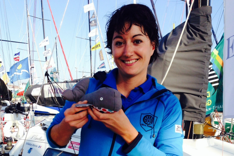 Juliette Pêtrès est l’une des quatre femmes engagées dans cette Route du Rhum. Âgée de 32 ans, l'ex vétérinaire, qui a quitté les vaches et la campagne pour l'aventure du Rhum, ne se sépare plus de sa petite baleine en tissu.