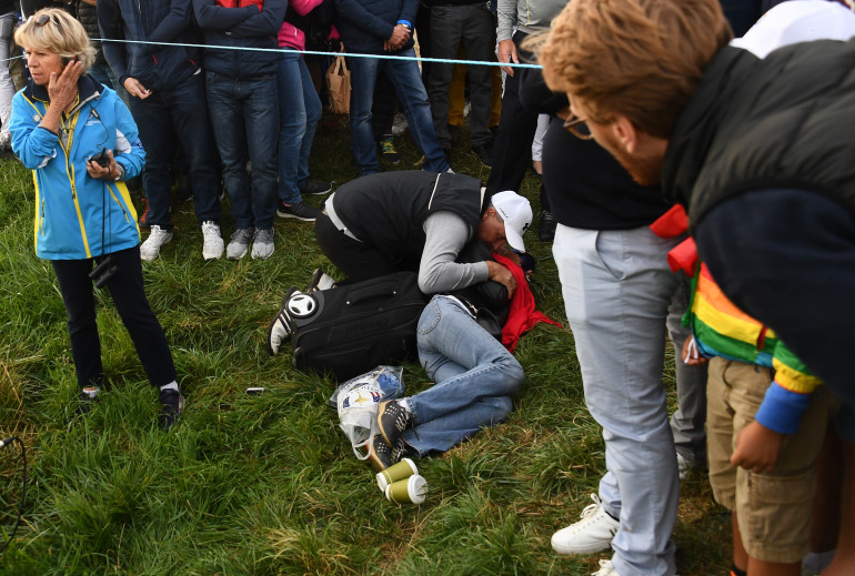 Une femme blessée au visage après un loupé lors de la Ryder Cup, le 28 septembre 2018
