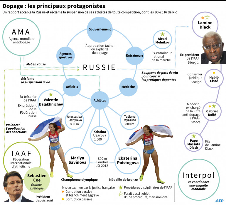 Les principaux protagonistes sur ce scandale d'un dopage organisé en Russie