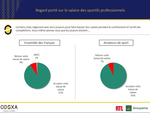 Pour eux, il n’y a aucun débat : les joueurs doivent accepter de réduire leurs émoluments. 91% des Français et 93% des amateurs de sport le pensent.