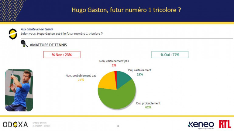 Mais un jeune français, qui avait fait sensation à Roland Garros en 2020, vient à nouveau de faire parler de lui. Eliminé en quarts de finale à Bercy, Hugo Gaston (21 ans) pourrait bien incarner la relève. Pour 77% des Français, le Toulousain sera le futur numéro 1 français.