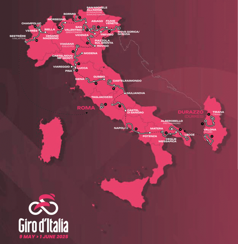 A quelques heures du départ de ce "Giro 108", deux grands favoris se démarquent : vainqueur en 2023, le Slovène Primoz Roglic (Red Bull - Bora - Hansgrohe), 35 ans, qui a remporté le Tour de Catalogne en début d'année. Deuxième de cette même course, Juan Ayuso (UAE Team Emirates), vainqueur de Tirreno-Adriatico cette année, sera également dans les favoris pour décrocher le fameux maillot rose à Rome.