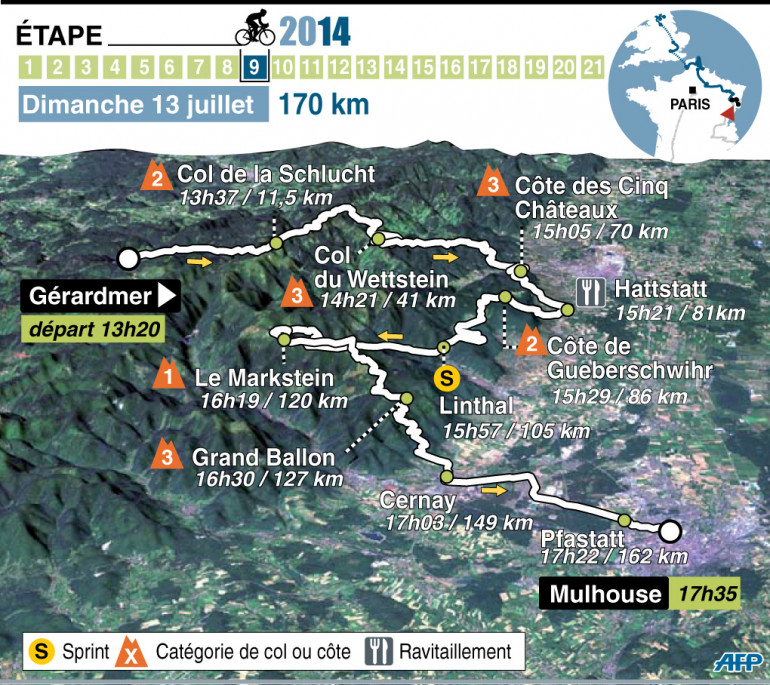 Infographie : le parcours de la 9e étape du Tour de France 2014