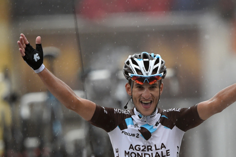 Le Toulousain de l'équipe AG2R La Mondiale a brillamment conclu sous la pluie une longue échappée sur les hauteurs embrumées de Gérardmer. "C'était un truc de fous", a raconté Kadri, ému et souriant. "J'ai essayé de réaliser un exploit comme Christophe Riblon (vainqueur d'étapes en 2010 et 2013) par la passé".