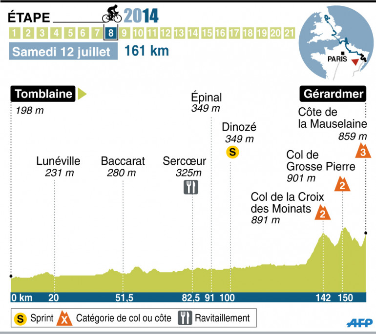 Dimanche, les coureurs auront 170 km à faire entre Gérardmer et Mulhouse, avec six ascensions à franchir, dont deux montées de 2e catégorie et une de 1ère catégorie. Les puncheurs et les grimpeurs auront à nouveau une étape à leur convenance.