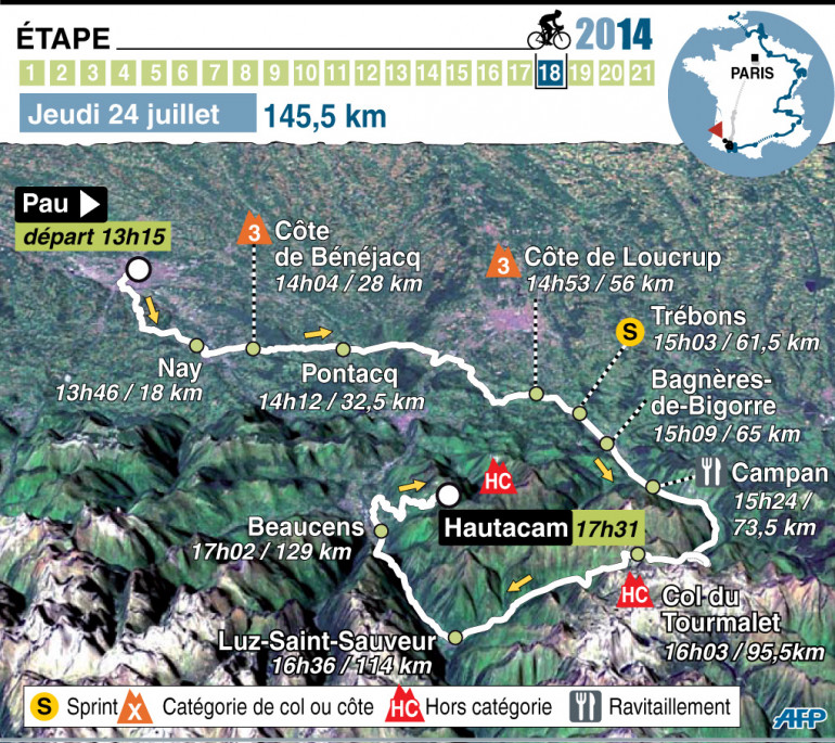 Infographie : le parcours de la 18e étape du Tour 2014