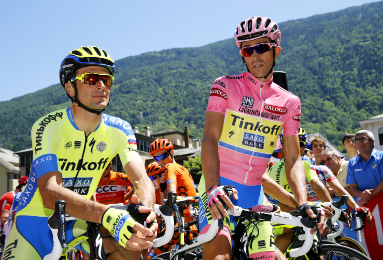 Ivan Basso aux côtés d'Alberto Contador en mai 2015 sur le Giro