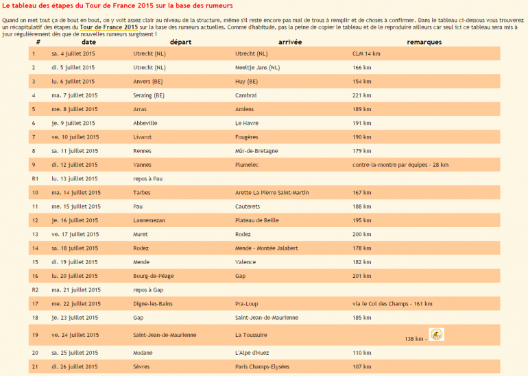 De son côté le site Cyclismeactu.net, qui a également produit sa propre carte, se base sur des rumeurs glanées sur internet.
