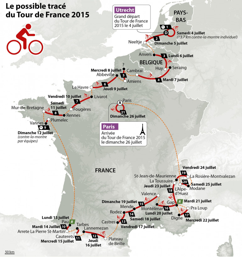 La suite attend confirmation. Le nord de la France, la Normandie, et la Bretagne doivent être au programme de la première semaine. Avec l'obligation d'animer l'épreuve, explique le directeur de course Thierry Gouvenou, pour éviter la litanie des sprints bien que le terrain s'y prête plus ou moins.