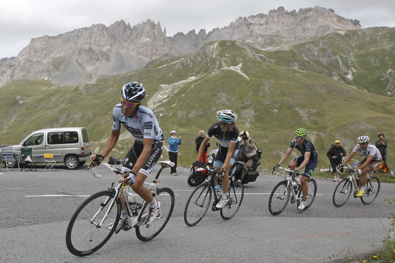 Alberto Contador, Andy Schleck, Rui Alberto Costa et Christophe Riblon dans le Galibier en 2011