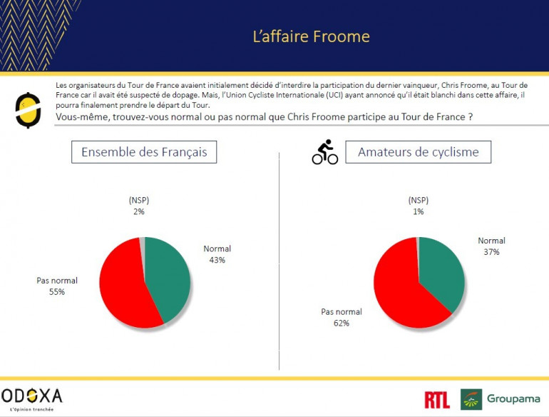 Mais au lendemain de la divulgation de cette nouvelle, l’UCI a rendu sa décision, le blanchissant et obligeant les organisateurs du Tour à revenir sur leur décision. Les Français (55%) et plus encore les amateurs de cyclisme (62%) jugent que la présence du coureur de la Sky n’est pas normale.