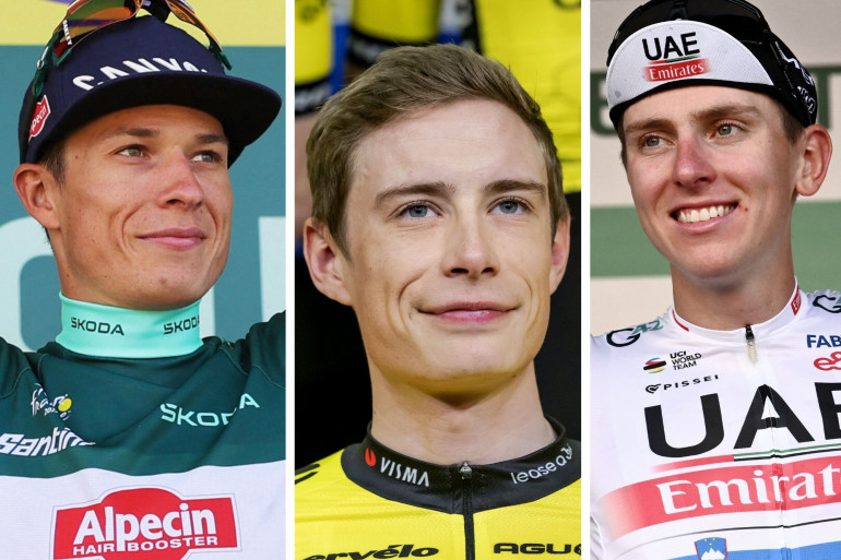 Jasper Philipsen, Jonas Vingegaard et Tadej Pogačar.