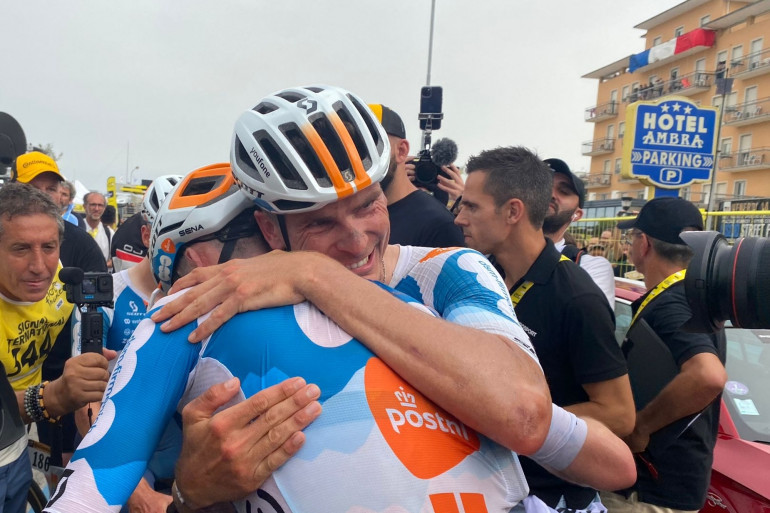 Sorti du peloton à 50 kilomètres de l'arrivée, le coureur de la formation DSM s'est imposé devant son équipier néerlandais Frank van den Broeck, auteur d'un gros travail pour son leader. Le duo a franchi la ligne avec seulement cinq secondes d'avance sur le groupe des favoris qui n'a pas réussi à rattraper les deux fuyards. Le Belge Wout Van Aert complète le podium de cette 1re étape, reliant Florence à Rimini.