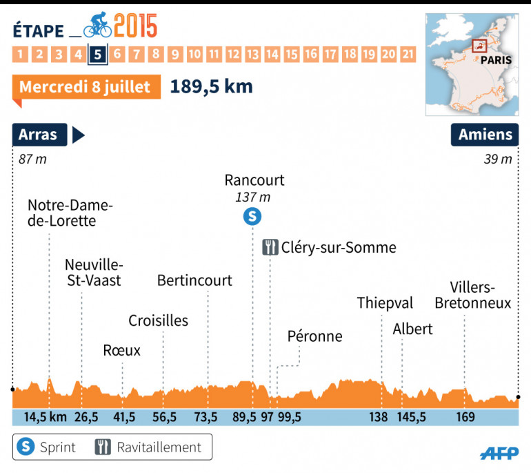 8 juillet : 5e étape, Arras - Amiens Métropole, 189,5 km