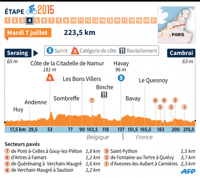 7 juillet : 4e étape, Seraing (Belgique) - Cambrai, 223,5 km
