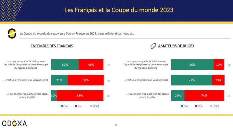 Quoi qu’il en soit, l’événement est très attendu par les amateurs de rugby (77%) même si le grand public est moins impatient (31%), un niveau qui s’améliorera probablement à