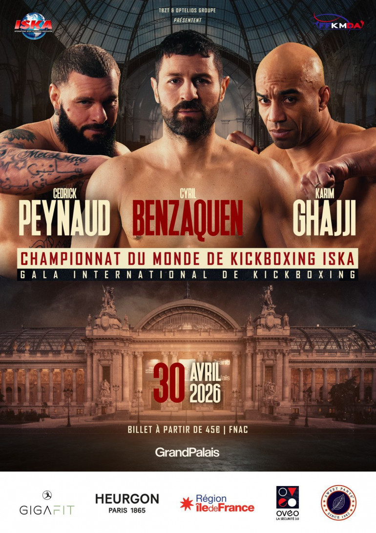 Un gala de kickboxing réunit l'élite française avec Karim Ghajji, Cyril Benzaquen et Cedrick Peynaud au Grand Palais le 30 avril 2026