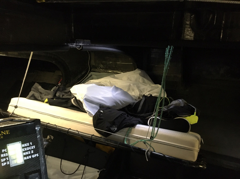 Dans la cabine, question confort, c’est le strict minimum sur ce bateau, à une exception : "Moi, j’ai fait le choix d’avoir une bannette confortable avec un vrai matelas, pour pouvoir avoir de vraies phases de repos importantes. Après le jeu, c’est effectivement de réussir à dormir quand le bateau va vite, quand ça tape et c’est là où il y a un vrai challenge", souligne Armel Tripon.