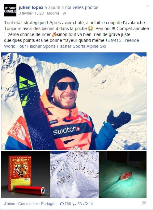 Sur la seconde étape du Freeride World Tour 2015, le Français Julien Lopez a été pris dans une avalanche au cours de son run (sa descente). Tombé à la suite d'un saut manqué, le skieur savoyard était en train de remonter la pente pour récupérer ses skis quand le mouvement de terrain s'est déclenché.