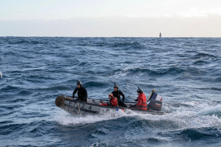 Kevin Escoffier a été récupéré par le Nivôse, frégate de la Marine Nationale. Le transbordement – via un semi-rigide du Nivôse – s’est bien déroulé, malgré une houle bien formée sur zone.