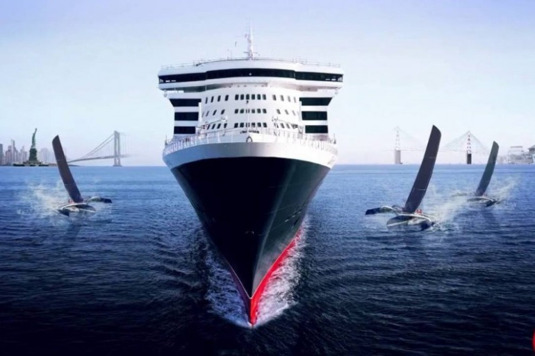 Le paquebot traversera l'océan tout droit avec ses 157.000 chevaux, à une vitesse de croisière de métronome de 26 à 28 nœuds contre des vents dominants. Les trimarans ont beau être les plus performants du monde et faire des pointes à 40 nœuds, ils ne renverseront pas la vapeur.