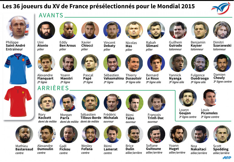 Les 36 joueurs présélectionnés pour la Coupe du monde 2015