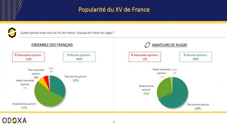 Les résultats sur le terrain, initiés à la Coupe du monde 2019 avaient déjà permis au XV de France de renouer avec une forte popularité. En janvier 2020, 77% des Français et 88% des