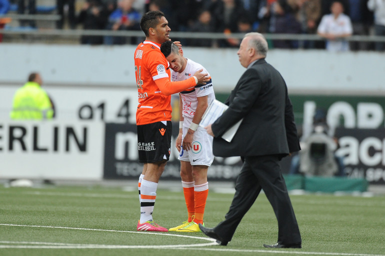 Lautoa et Cabella après le match nul entre Lorient et Montpellier, le 20 avril 2014