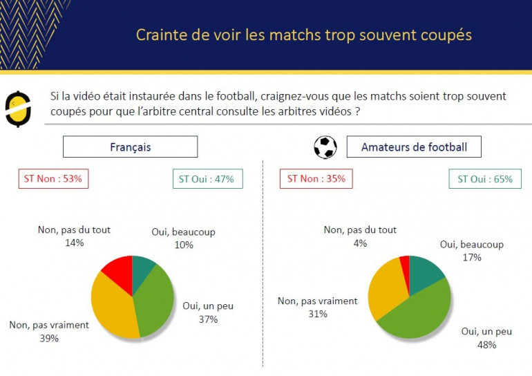 Leur crainte est légitime selon un Français sur deux (47%) et est surtout partagée par les deux tiers des amateurs de football (65%), ceux-là même qui risqueraient de s’agacer devant leur écran en attendant la consultation de l’assistance vidéo pour aider l’arbitre à prendre une décision.