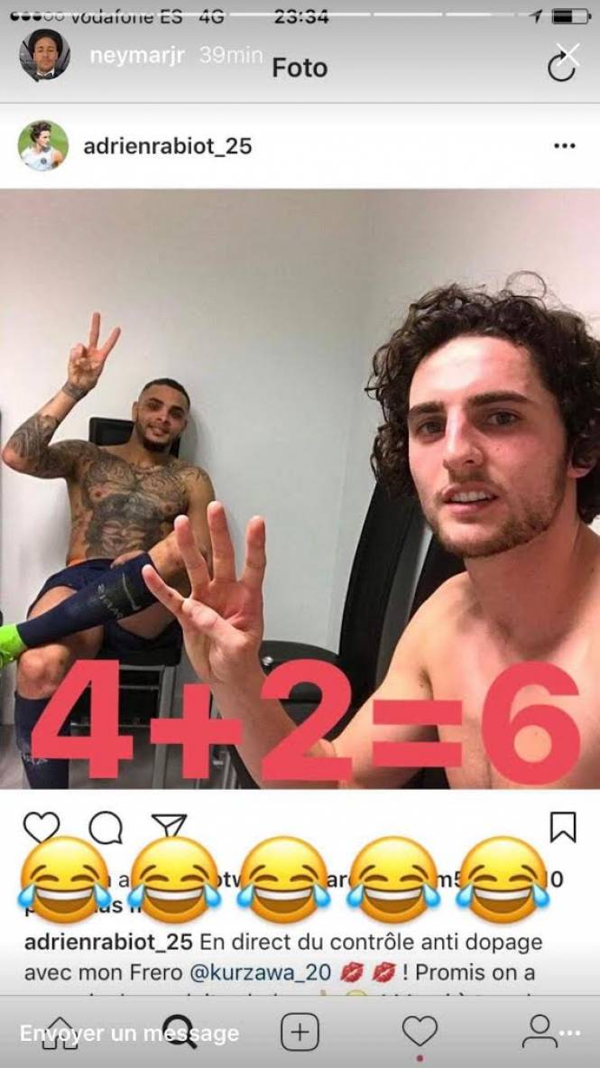 Taquin, Neymar a fait une capture d'écran de cette photo et l'a publiée sur Snapchat, en apposant une légende "4+2=6" mais aussi en ajoutant cinq emojis très rieurs et surtout très moqueurs. Une publication qui n'est évidemment pas passée inaperçue sur les réseaux sociaux, sur lesquels ce détournement est perçue comme l'humiliation suprême pour le Paris Saint-Germain.