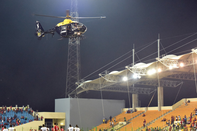 L'hélicoptère qui a servi à faire fuire les supporteurs, le 5 février 2015, à Malabo.