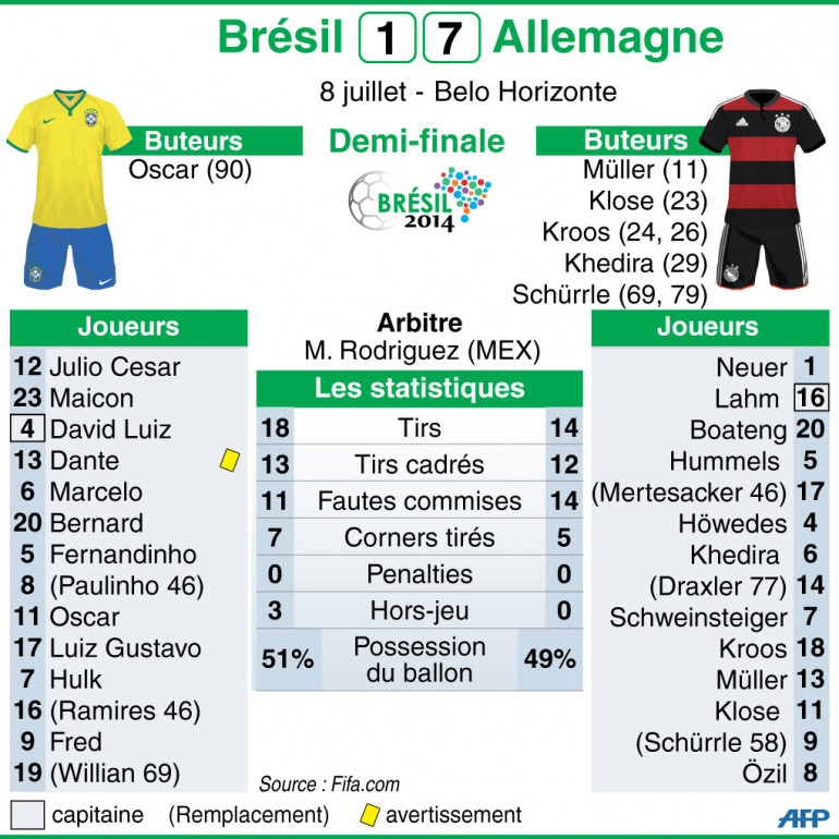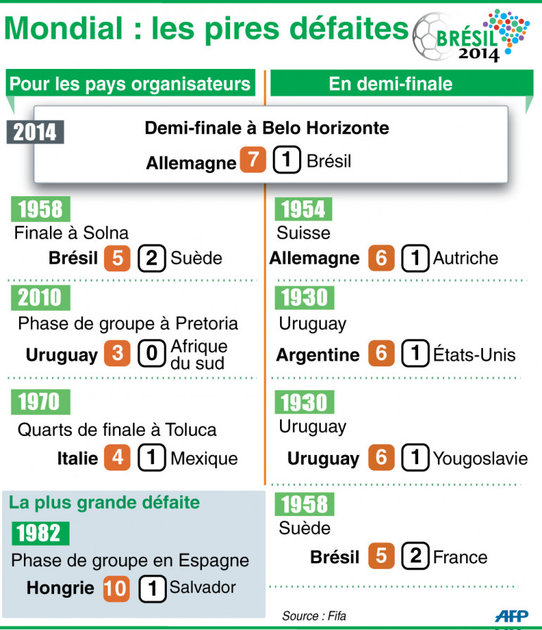 Historique dans sa dimension émotionnelle très forte, vu le drame qu'une telle déroute représentera dans l'histoire du grand peuple de football qu'est le Brésil. Car cette Coupe du monde, c'était la leur. La patrie du "Roi" Pelé est plongée dans les ténèbres, et de nombreuses données statistiques sont là pour confirmer que ce cataclysme de Belo Horizonte restera marqué d'une pierre blanche.
