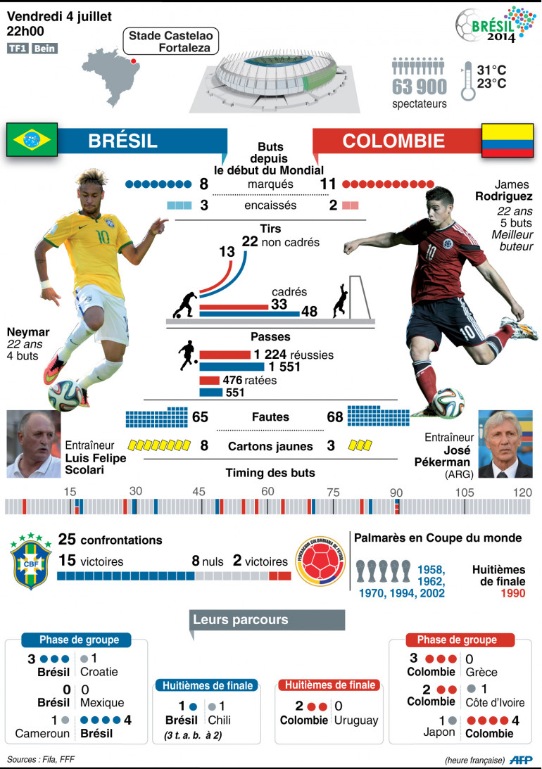 Infographie : tout ce qu'il faut savoir sur le quart de finale Brésil-Colombie
