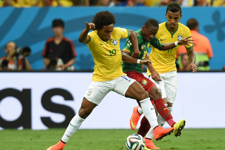 Willian se démarquant de la défense camerounaise lors du Mondial 2014 au Brésil