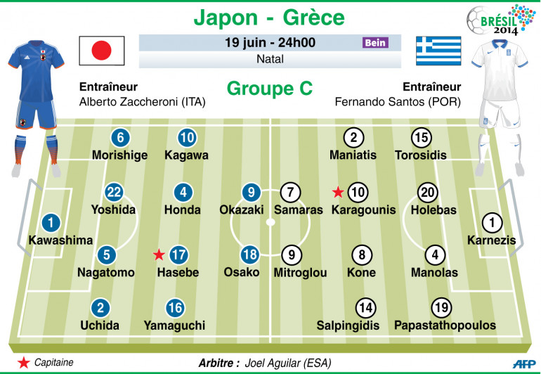 Gare au K.O. Défaits d'entrée, respectivement par la Côte d'Ivoire et la Colombie, les "Samouraïs" et le "Bateau Pirate" (surnom méconnu de l'équipe grecque) sont opposés dans la nuit de jeudi 19 juin à vendredi 20 juin (minuit) à Natal, dans une rencontre du groupe C où l'enjeu sera de survivre dans ce Mondial.