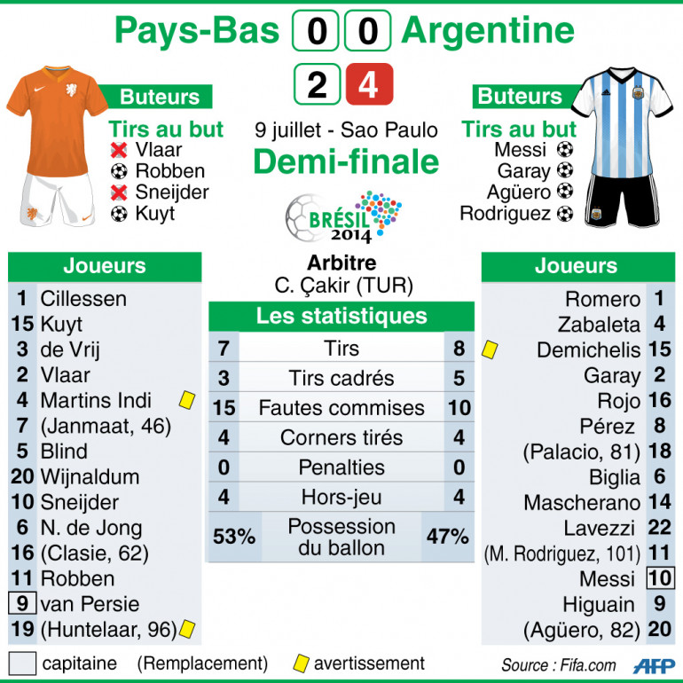 "On a tous dû attendre la séance de tirs au but car on est tombés sur un match assez fermé. Un match où les défenses ont dominé les débats et empêché les talents individuels de s'exprimer, notamment celui de Lionel Messi côté argentin et d'Arjen Robben chez les Néerlandais".