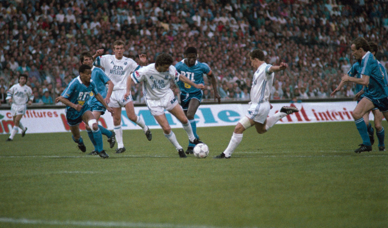Jean-Pierre Papin (en blanc à droite) le 5 mai 1989 avec Marseille