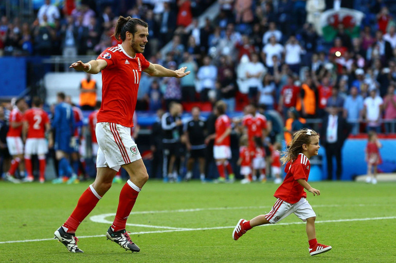 Gareth Bale et sa fille Alba au Parc des Princes à Paris, samedi 25 juin 2016.