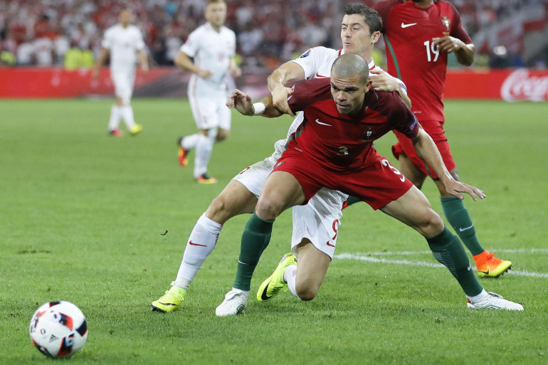 Pepe à la lutte avec Lewandowski, le 30 juin