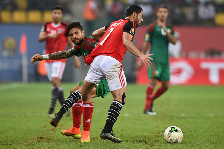 Manuel Da Costa face à Ahmed Fathi pendant Maroc-Égypte le dimanche 29 janvier 2017